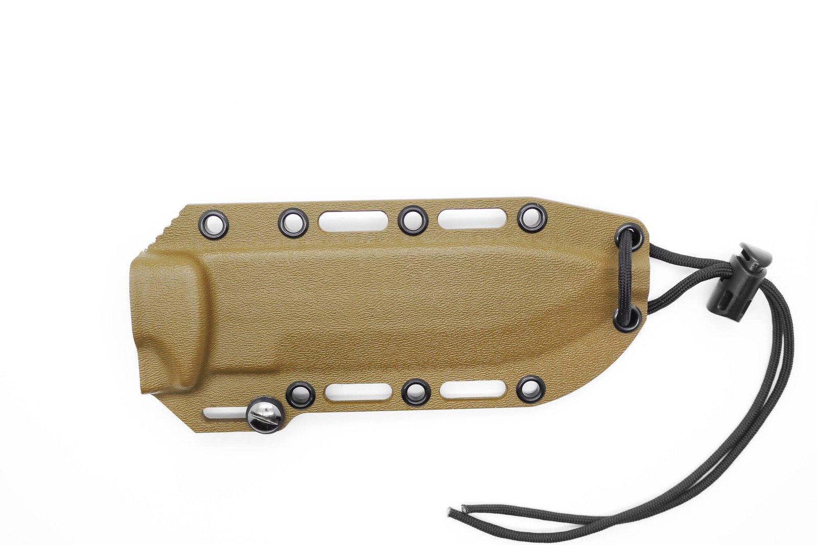 Add our Kydex Firesteel loop to be able to attach a Firesteel to the sheath. The pictured paracord and cord lock is included.