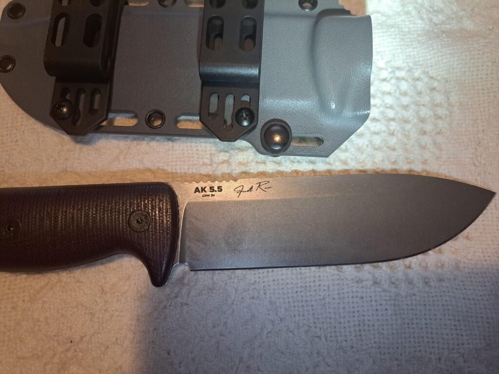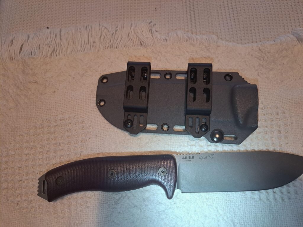 The modular design allows the AK 5.5 to be configured to meet the application. You can easily change scales and/or sheaths to meet your needs. The knife arrived razor sharp, sharper than many other CPM 3V knives in my collection. I did not need to touch up the edge before use. While finished very well, this knife is not one that screams “Safe Queen”. Rather, it is a knife that you will want to use quite often in the field for a variety of tasks.