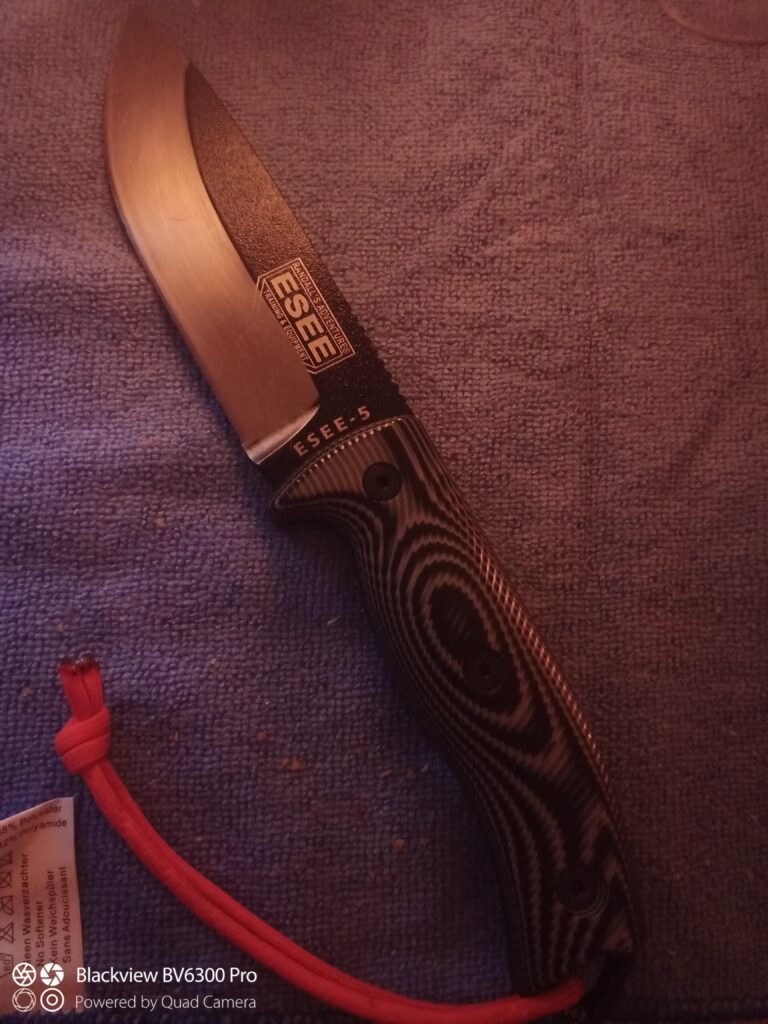 Got these blk handles for my esee 5 with forced patina tiger strips i feel i have to giver her a name im in love she’s beautiful we sleep together she can be cold but she will always protect me — Originally posted at TheKnifeConnection